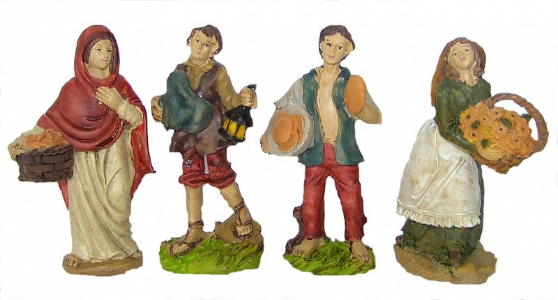 - 4 kusy v sadě - dřevorubec, žena v zeleném s košíkem květin, poutník s lucernou, poutník s plackami